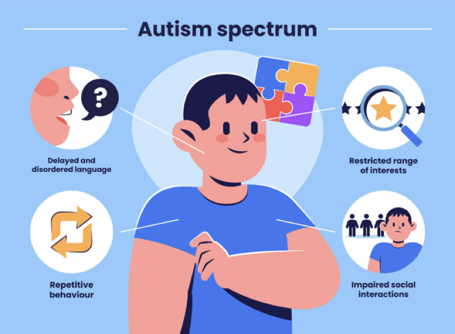 Autism Spectrum Disorder is a neurodevelopmental condition that affects how individuals communicate, process information, and experience the world. People on the spectrum may struggle with social communication, prefer routines, or have sensory sensitivities. But autism is called a spectrum because no two individuals are alike—each has unique strengths and challenges. Importantly, autism is not a disease to be cured; it is a difference in brain wiring that deserves understanding and acceptance.
